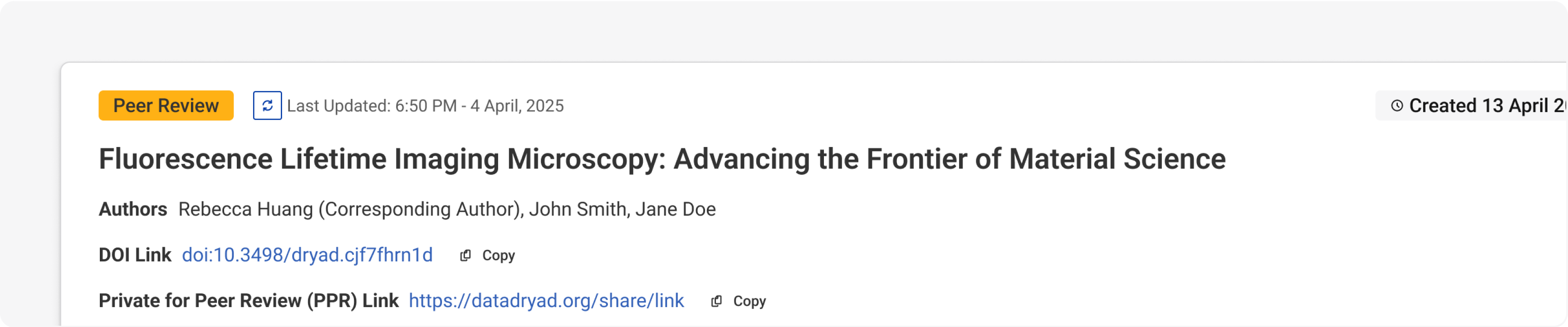 Once the dataset as been submitted, the files will remain private while the manuscript undergoes peer review process as shown below: